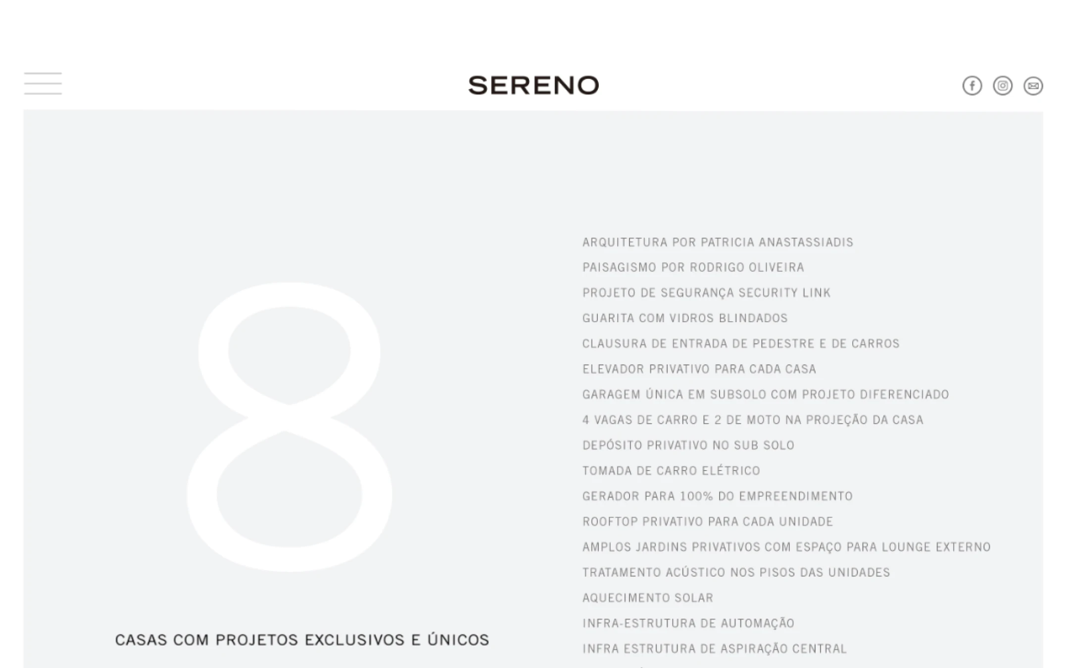Um residencial de 8 casas em Alto de Pinheiros, assinado por Patricia Anastassiadis. Meu trabalho foi fazer o site e os materiais impressos serem tão sofisticados quanto o empreendimento. An 8-home residential project in São Paulo's finest neighborhood, designed by Patricia Anastassiadis. My job was to make the website and printed materials as refined as the development itself.