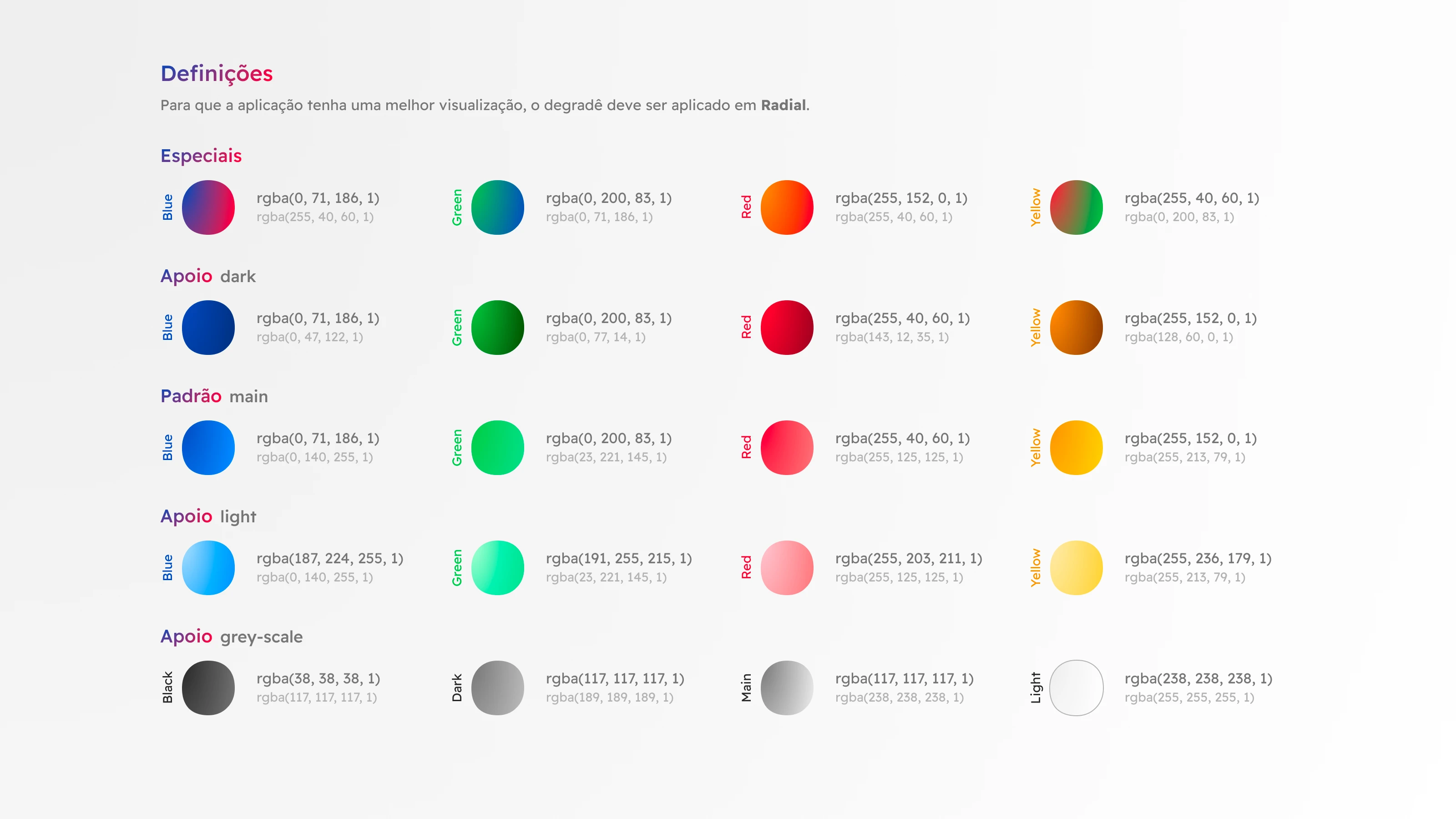 Entreguei uma identidade visual completa: logotipo e suas variações (padrão, redução, preto e branco), sistema de cores com gradientes documentados, tipografia com escala definida, e biblioteca de ícones e pictogramas. Tudo documentado em brandbook para que qualquer pessoa do time pudesse aplicar sem precisar me consultar.